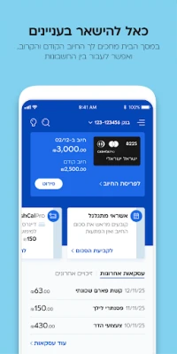 Transforma la gestión de tus finanzas con la aplicación de Cal, tu centro de control personal diseñado para una experiencia sin igual. Obtén una visión clara y detallada de todas tus operaciones, desde gastos en Israel hasta transacciones internacionales y créditos en curso. Ya sea una tarjeta Visa, MasterCard, Diners, débito o las flexibles CalChoice, toda la información que necesitas está unificada y al alcance de tu mano. Explora el historial de tus movimientos hasta por año y medio, identifica rápidamente cualquier actividad inusual o consulta el nombre de un comercio con facilidad, asegurando siempre tu tranquilidad.