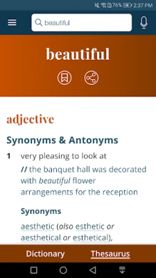 El diccionario más útil y respetado de América, optimizado para Android. Constantemente actualizado con las palabras y significados más recientes. Una referencia esencial para el idioma inglés, educación y construcción de vocabulario.