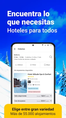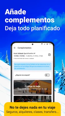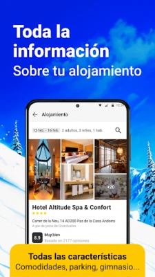 Explora cada detalle de tu futuro alojamiento con galerías de fotos, descripciones de servicios y la distancia precisa a las pistas, facilitando la elección perfecta. Además, "Esquiades.com - Ofertas Esqui" te permite personalizar tu uso al seleccionar tus estaciones favoritas, garantizando un acceso rápido a su parte de nieve, webcams y condiciones climáticas específicas. La flexibilidad es clave: opta por reservar solo el hotel y añade los extras que desees, como clases o seguros, en cualquier momento. "Esquiades.com", una marca de Grupo Viajes Para Ti S.L. con más de dos décadas de experiencia, ha diseñado esta herramienta pensando en cada detalle para asegurar que tu aventura en la nieve sea tan fluida como la nieve recién caída. Tu escape ideal a la montaña comienza aquí.
